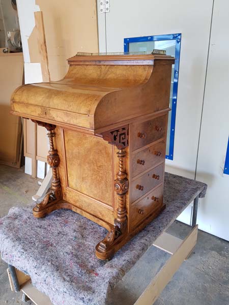 Our client had this beautiful old Davenport handed down from his mother. Davenports are defined as ornamental writing desks with drawers and a sloping surface for writing.