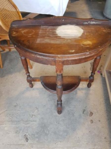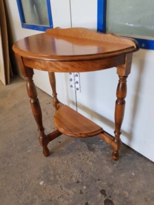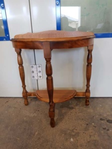 This lovely half-round table is a 1940-50s classic piece of occasional furniture.