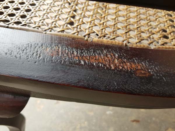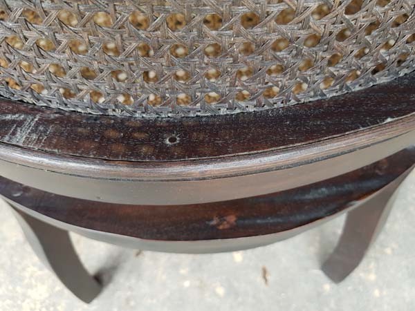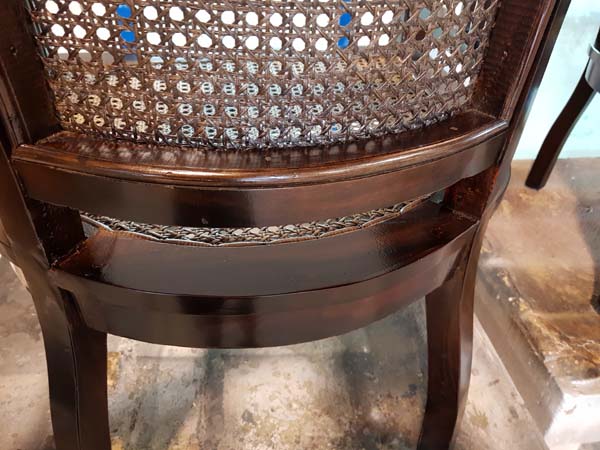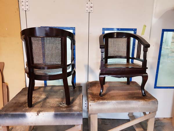EARTHWOOD cleaned up the ground-out areas and re-stained, matching perfectly. Where it was necessary we filled the open grain and then re-polished the entire chairs in a practical good-looking two-pack satin polyurethane to bring them to a much improved state over their original new condition.