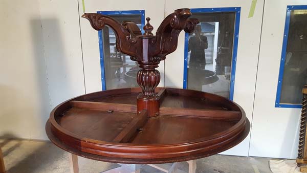 Total makeover of 1980s carved mahogany dining table.